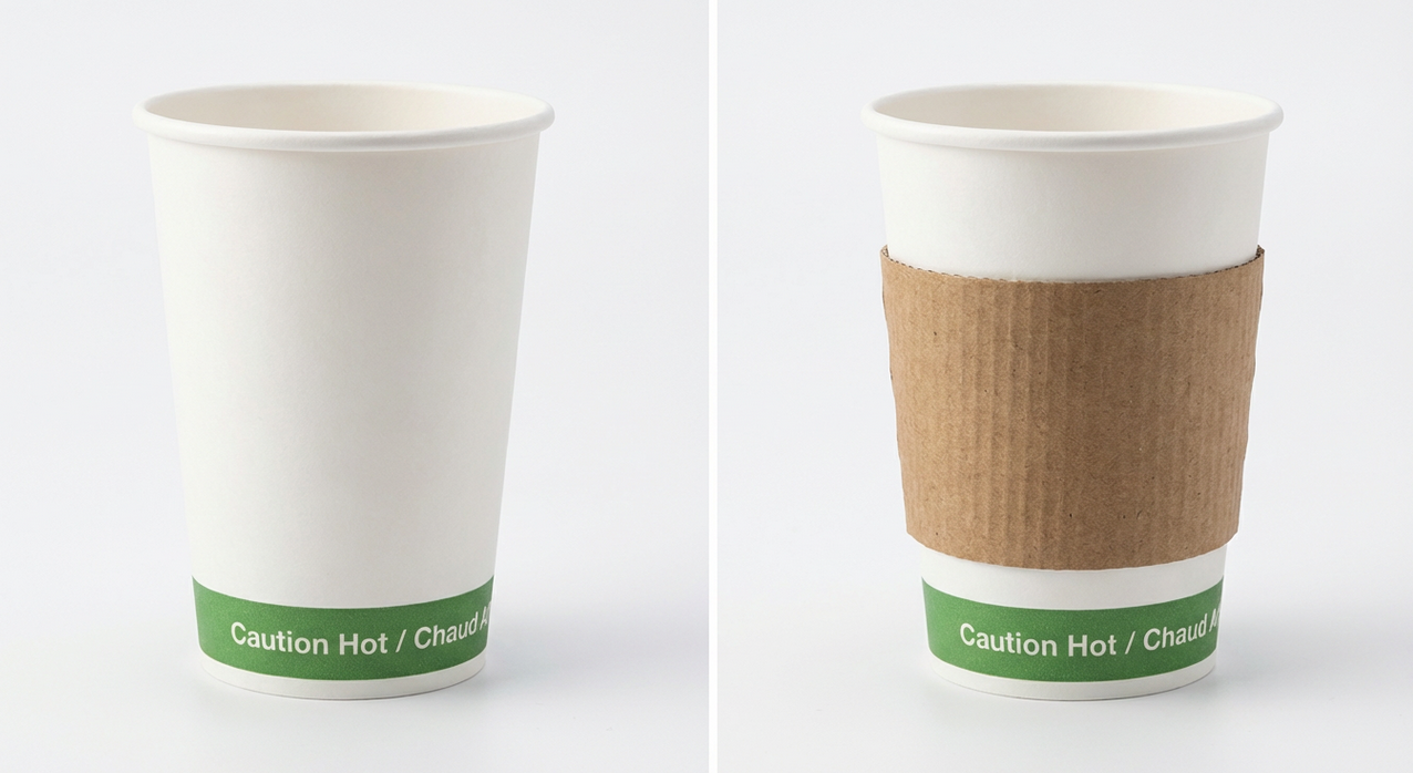 Our 9 oz unwrapped single wall paper cup is designed to be used with cold liquids, and can be used for hot beverages with the cardboard sleeve (sold separately)