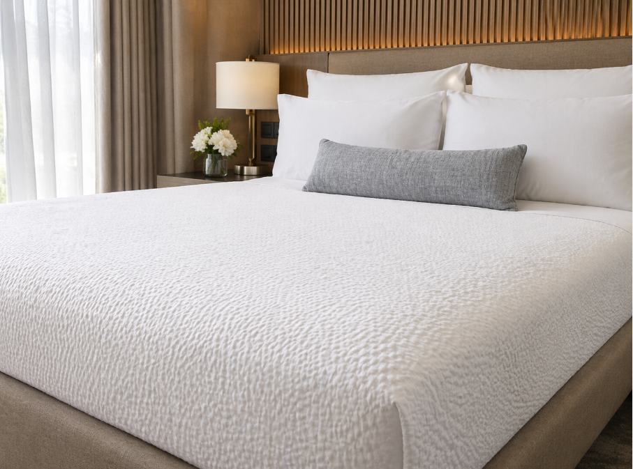 Choose from one of our decorative top sheets, coverlets or bedspreads to complete your hotel bedding ensemble.