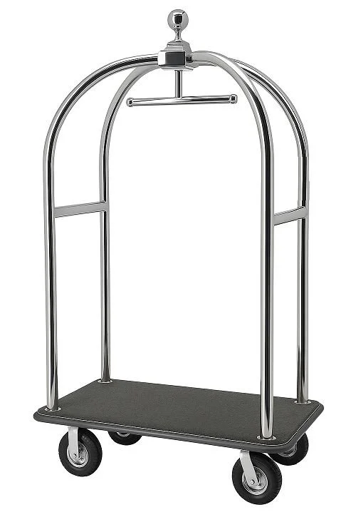 This three-wheel compact carrier is a great item to help guests traveling light who would not normally use a larger bellman’s cart. Easily transports a small to medium bag or two and a lightweight garment bag.