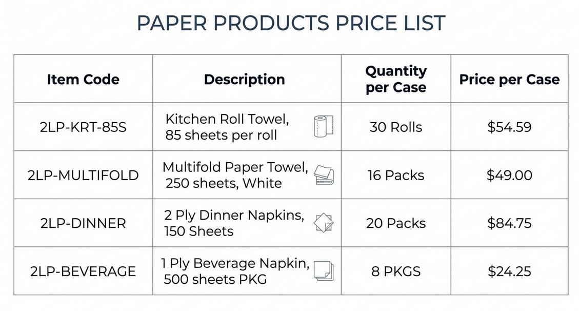 Now offering paper towels, dinner and beverage napkins, multi and single fold towels.