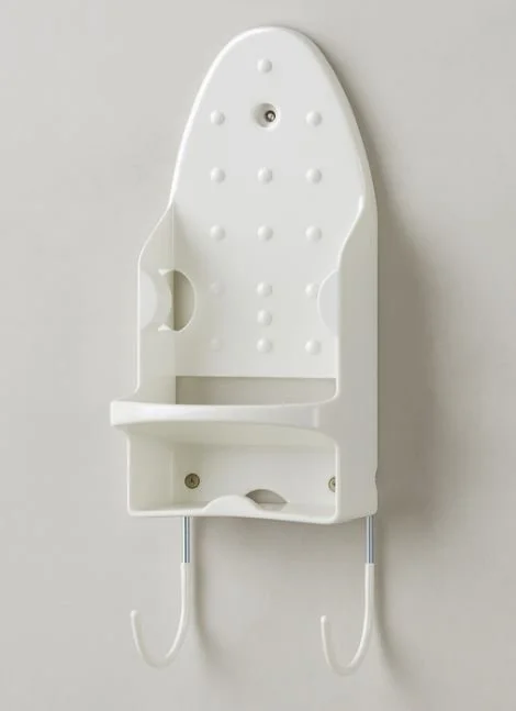 Provides safe storage of hot irons and ironing boards. The ironing board organizer will help protect walls and doors from damage.